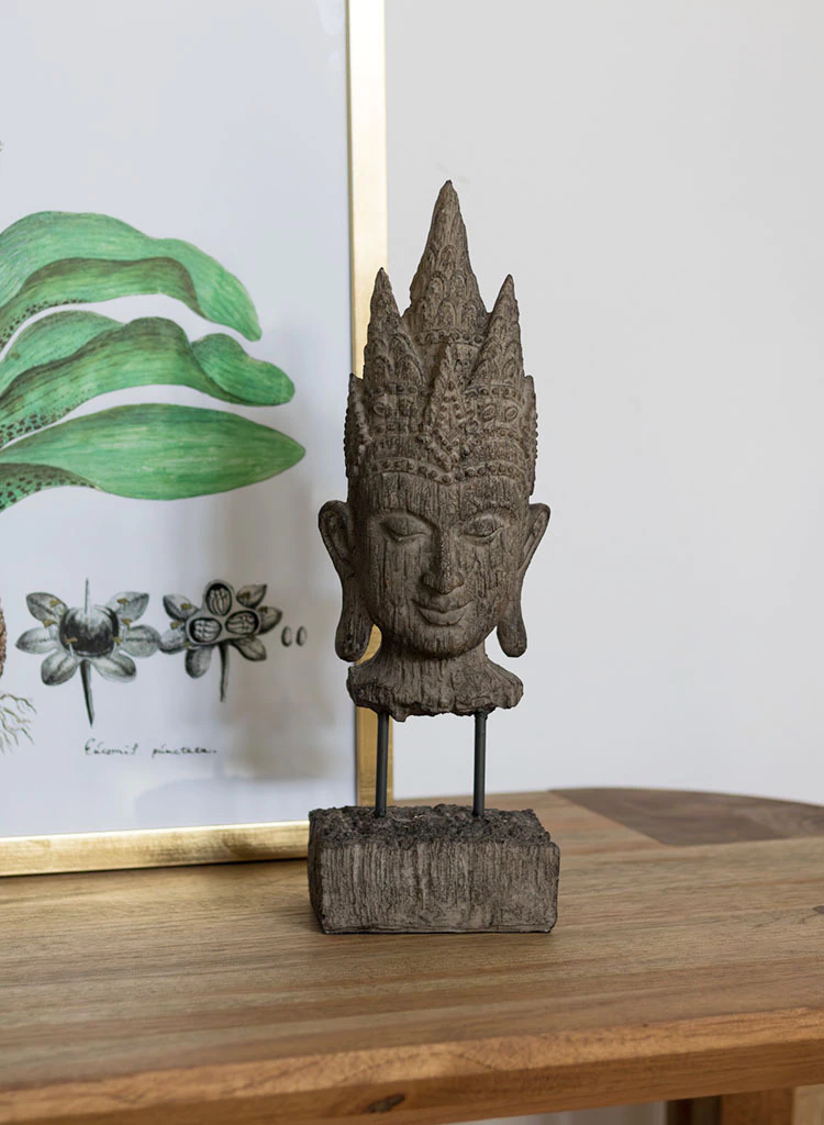 Busto de Buda tallado, inspirado en el arte oriental, aporta serenidad y un aire místico a cualquier espacio. Ideal para usar sobre consolas, mesas laterales, estanterías o bibliotecas.