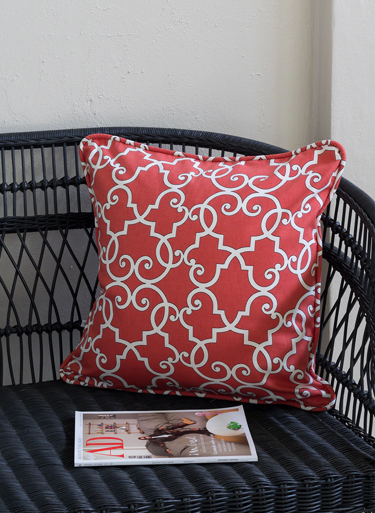 Almohadones de estampado Rizoma. Perfectos para colocar en sillones, camastros o camas. Se pueden acompañar con almohadones de terciopelo.