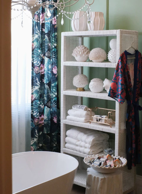 Esta biblioteca de rattan tejido y esterilla en color blanco combina estilo y funcionalidad. Su diseño liviano y elegante es perfecto para organizar y exponer tanto objetos decorativos como blanqueria, aportando un toque de frescura y sofisticación al ambiente. Ideal para quienes buscan una pieza versátil y ligera que se adapte a diferentes espacios, desde livings hasta baños.
