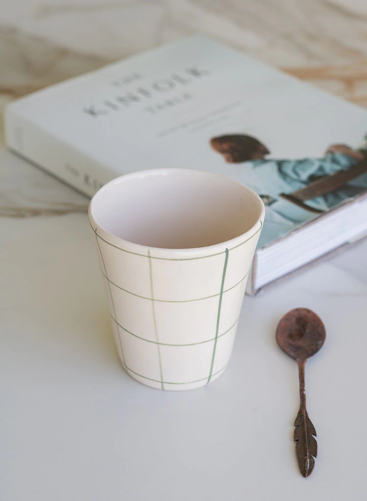 Realizado en cerámica de forma artesanal, con cuadraditos color verde pintados a mano. Ideal para usar como vasito porta-portes para queso untable o dulce de leche, dándole un look canchero y original a tus desayunos y meriendas. También puede usarse como tazón para café, té, frutas o cereales!