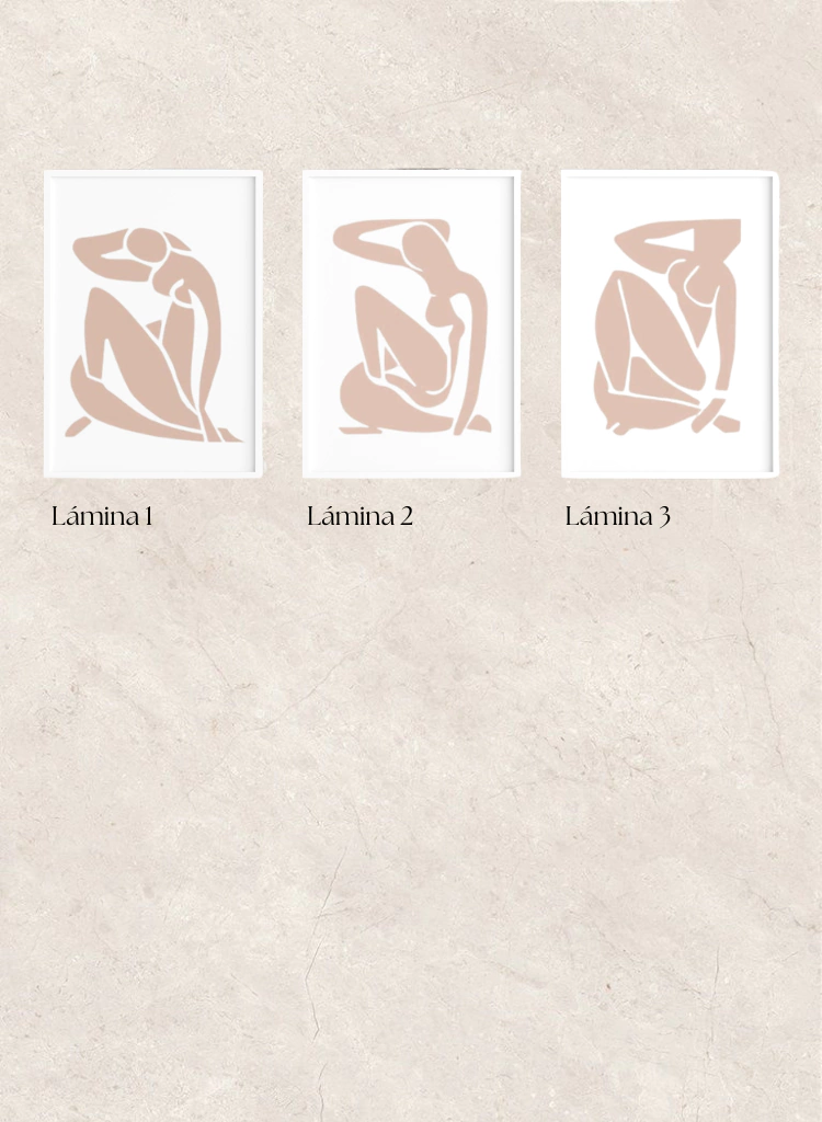 Cuadro Colección Matisse Body Pink con diferentes láminas sin paspartú en marco blanco cajón. Son ideales para usar arriba de un escritorio colgado o apoyado, también en consolas de living o entradas, aportando un look fresco y moderno a los espacios!