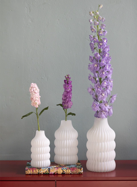 El florero Ondara está realizado en vidrio esmerilado con un diseño de líneas onduladas que aportan movimiento y textura. Su acabado mate y su forma suave lo convierten en una pieza atemporal, ideal para acompañar flores frescas o secas. Perfecto para decorar mesas, estanterías o consolas, aporta luz, armonía y un toque contemporáneo a cualquier ambiente.
