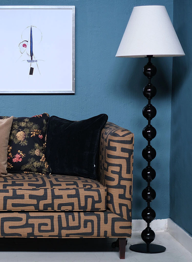 Base y estructura de hierro, combinado con botellones y bochas de vidrio pintados artesanalmente en color negro. Es un modelo clásico que aporta un look canchero y sofisticado a cualquier ambiente. Ideal para usar en algún rincón ya sea al costado de un sillón creando un espacio de lectura o bien en alguna esquina del living, comedor o dormitorio.