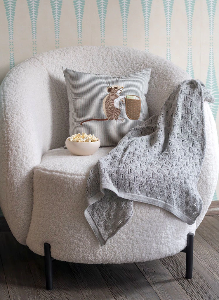Manta realizada en hilo de algodón tejida en punto color gris. Ideal para usar como pie de cama, también puede usarse al costado de un sofá o sillón de living, aportando un look cálido y personal al espacio. Se recomienda lavar a mano con agua fría.