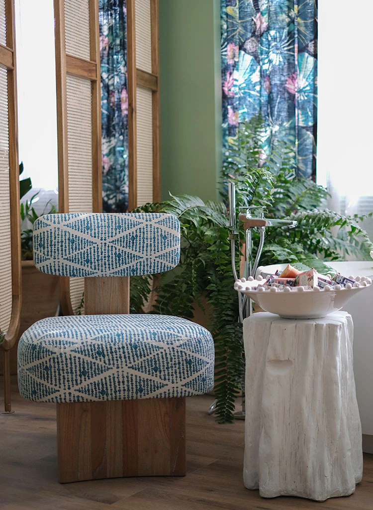 El Sillón Elna está realizado en madera paraíso patinada con estampado exclusivo AC. Es una pieza única que combina elegancia y funcionalidad. Su diseño distintivo presenta una pata trasera que abraza el asiento, brindando un soporte excepcional y un estilo sofisticado. Es ideal para usar en rincones de lectura, habitaciones o livings, aportando un look elegante y ese toque único a cualquier espacio.